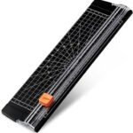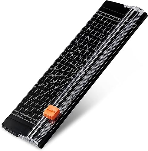 Tradecom ペーパーカッターはA4サイズ対応で、10枚まで裁断可能。ズレ防止機能付きで、業務用や家庭用に最適。ブラック色のスタイリッシュなデザイン。