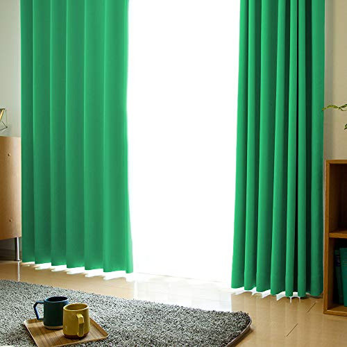 【Ezee】 丈60cm~260cm対応 40色×128サイズ 遮光1級 防炎加工 形状記憶加工 日本製 遮熱 節電対策 カーテン/エメラルドグリーン 幅100cm×丈180cm 2枚入の高価買取
