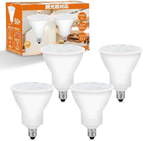 11口金のLEDスポットライト。調光器対応、RA90、電球色2700K。6Wで650LM、60W形相当。広角ビーム角40度。看板、家庭、店舗照明に最適。2個入り、ホワイト。