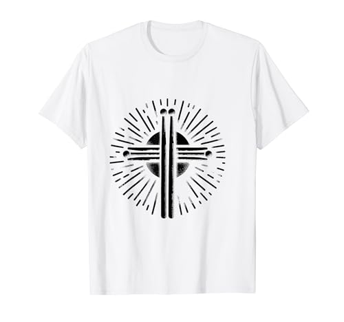 パーカッション好き必見!このTシャツはドラムスティックやクロス、ドラマーの演奏をテーマにデザインされています。快適な素材でドラミングを楽しむあなたにぴったりなアイテムです。