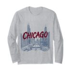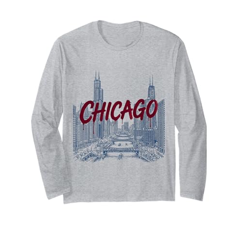 シカゴの街並みをイラストで表現した長袖Tシャツ。太字のペイントテキストがアクセントに。コットン100%、快適な着心地でデイリーコーデに最適です。サイズ展開も多彩。