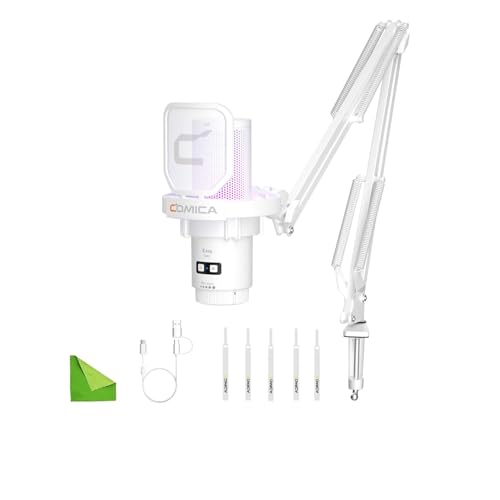 comica USB マイク コンピューターとスマートフォン用,RGB カーディオイド コンデンサー ゲーミング マイク ポッドキャスティング、ストリーミング、録音、音楽制作用,ブーム アーム スタンド付き – ホワイト(Uni A)の高価買取