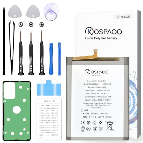 KOSPAOO for Samsung Galaxy A53 5G/A33 5G バッテリー 交換 容量4860mAh 3.88V 対応EB-BA336ABY/EB-BA536ABY電池 PSE認証 適用SC-53C/SCG15/SM-A5360/SM-A536E等機種 互換修理用 Secondary Li-ion Battery 高温・低温耐性 適用Galaxy A53 5G電池【工具付】の高価買取