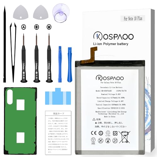 KOSPAOO for Samsung Galaxy Note 10 Plus/Note 10+ バッテリー 交換 容量4170mAh 3.85V 対応EB-BN972ABU電池 PSE認証 適用SC-01M/SCV45等機種 互換修理用 Secondary Li-ion Battery 高温・低温耐性 600~800サイクル寿命 適用Galaxy Note10 Plus電池【工具付】 高価買取中