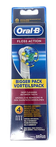 ブラウン オーラルBの替えブラシ、FLOSS ACTIONは4本入りで、歯間ワイパーが付いています。効率的なプラーク除去を実現し、より健康な歯茎と口腔をサポートします。並行輸入品です。