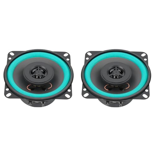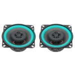 2個カーオーディオスピーカー 4インチ、100ワット出力。高音質なツイーターを搭載し、車のドアに最適。スタイリッシュなブラック&グリーンデザインで、音楽を楽しめます。