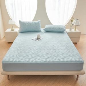 Ovege 防水パッド一体型ボックスシーツ シングル|超音波圧花加工|マイクロファイバー|介護用&ベビー用|マットレスプロテクター|洗えるおねしょシーツ|抗菌防臭防ダニ|オールシーズン使用可能|100x200cm