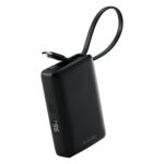エレコム モバイルバッテリー 10000mAh。ケーブル一体型で30W PD対応。残量表示機能付き。USB-CとUSB-Aポートで機内持ち込みも可能。iPhone 16シリーズやiPad 第10世代にも最適。ブラック。