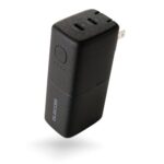 エレコムのモバイルバッテリーは5000mAhの容量を持ち、30WのPD対応でコンセント一体型です。2ポートUSB-C搭載で、ブラックカラーの洗練されたデザインです。