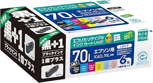 エコリカのエプソン対応リサイクルインク大容量6色パック+ブラック。対応機種はEP-306、EP-315、EP-706Aなど。残量表示対応で封筒パッケージ。Amazon.co.jp限定商品。