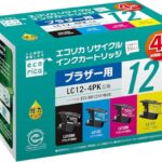 エコリカ ブラザー LC12-4PK対応リサイクルインク 4色パック EC-LC124PKAは、残量表示に対応し、エコリカ封筒パッケージに入っています。環境に配慮した高品質な互換インクです。