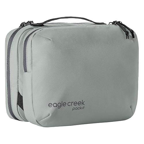 Eagle Creek Pack-It 三つ折りトイレタリーキット – Dopp Kit トイレタリーオーガナイザー パッド入り内部、耐久性のある吊り下げフック&大きなコンパートメント – 防水&洗濯可能 – ストームグレーの高価買取