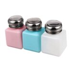 FRCOLORのネイルリムーバー空ボトルは、押し込み式ポンプで使いやすく、液漏れ防止設計。携帯に便利で、ネイルアートやメイクアップ用の溶剤容器として最適です。