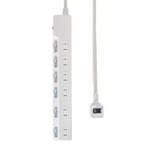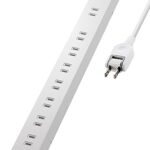 エレコムの電源タップ ECT-0102WHは、雷ガード機能を備えた10個口のモデルです。2mのコード長で、ほこりシャッター付き。固定・吊下げ可能な回転パーツも付属し、便利な設計です。