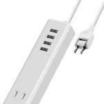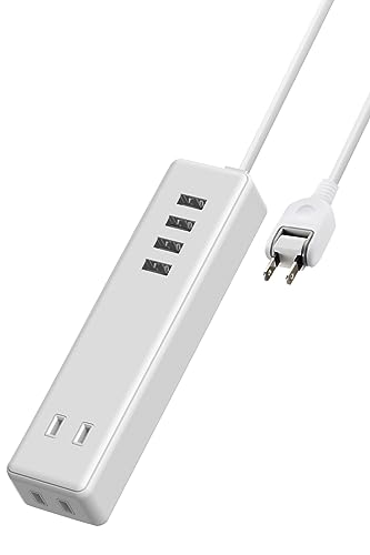 エレコムの電源タップECT-0415WHは、3.4A出力のUSBポート×4、コンセント×2を搭載。1.5mのケーブル長で、ホワイトカラーがスタイリッシュ。複数機器同時充電に最適です。