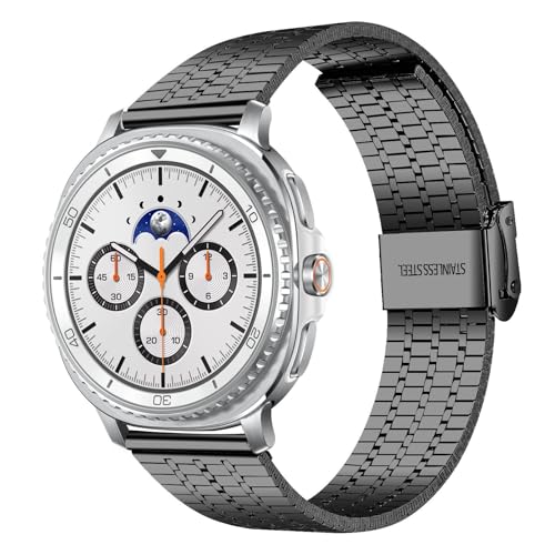 Samsung Galaxy Watch8 / 8 Classic用の7ビーズバックル腕時計バンド。ステンレススチール製(ブラック)で耐久性があり、スタイリッシュなデザイン。サイズ調整可能で、快適な装着感を提供します。
