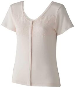 [ハナサンテラス] 介護下着 女性 前開き 3分袖 ワンタッチシャツ プラスチックホック 介護用肌着 大人用 (M, ピーチ)