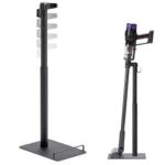 イーサプライ 掃除機スタンド スティッククリーナースタンド 多機種対応 高さ調整5段階 耐荷重3kg スチール台座 収納 立て掛け 省スペース フック付き ブラック EEX-CLST04BKの製品情報