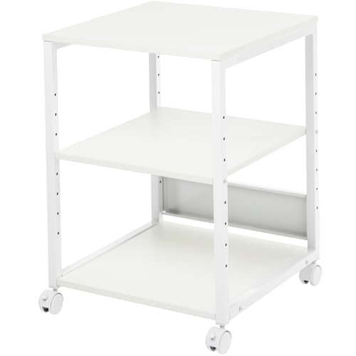 / イーサプライ プリンター台 3段 A3 大型 木製 幅51cm 奥行51cm 高さ70cm 耐荷重50kg キャスター付き PCワゴン 袖机 ホワイト EEX-PTS02
