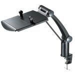 イーサプライのテレフォンアームは、クランプ式で360度回転可能なハイタイプの電話台です。オフィスや事務所で電話機を共有する際に最適で、スタイリッシュなブラックデザインが特徴です。
