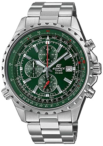カシオ EDIFICE EF-527D-3AVは、グリーンカラーのクロノグラフ腕時計です。円形計算尺機能付きで、スタイリッシュなデザインが特徴。海外モデルで品質も優れています。