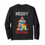 Merry Brickmas ブロックをテーマにしたクリスマスデザインの長袖Tシャツ。マスタービルダーにぴったりのアイテム。快適な着心地とスタイルを提供します。