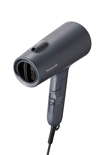 パナソニックのドライヤーEH-NE5M-Hは、イオニティ機能でマイナスイオンを放出し、髪を速乾します。大風量設計で、ダークグレーのスタイリッシュなデザインが特徴です。
