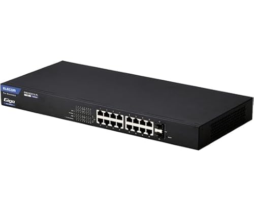 エレコム LANハブ WEBスマート PoE 16P Fレス EHB-SG2C16-PLは、16ポートのGigabit Ethernet対応ハブです。PoE機能により、IPカメラやアクセスポイントに電力供給が可能で、管理機能も搭載しています。