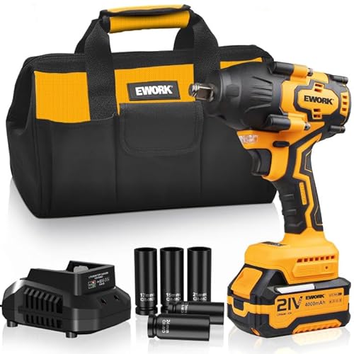 EWORK コードレスインパクトレンチは、1/2インチサイズと21Vの強力なブラシレスモーターを搭載。高トルクで簡単にボルト締め・緩めが可能。特に作業効率を高める工具です。