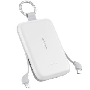 RORRY モバイルバッテリー【創新プロ版】(10000mAh,30W,2本ケーブル内蔵) 軽量 小型 大容量 3台同時充電【USB-C入出力 PD対応/PSE技術基準適合】急速充電 携帯充電器 For iPhone 17/16/ 15/14/13/iPad/AirPods/MacBook/Switch2など各種機器対応 カラビナ付き アウトドア 旅行 持ち運び 防災 Power Bank