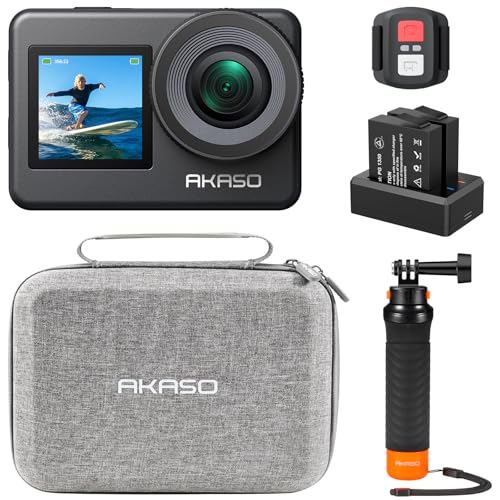 AKASO Brave7は4K60FPS撮影に対応したアクションカメラです。水中撮影が可能で、フローティングハンドグリップと収納バッグが付属しています。