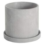 Ekirlinの植木鉢は、セメント製の円筒形鉢で、サイズは6号(16.5cm)です。受け皿付きでシンプルなデザイン、グレーのコンクリート仕上げ。底穴があり、観葉植物に最適です。