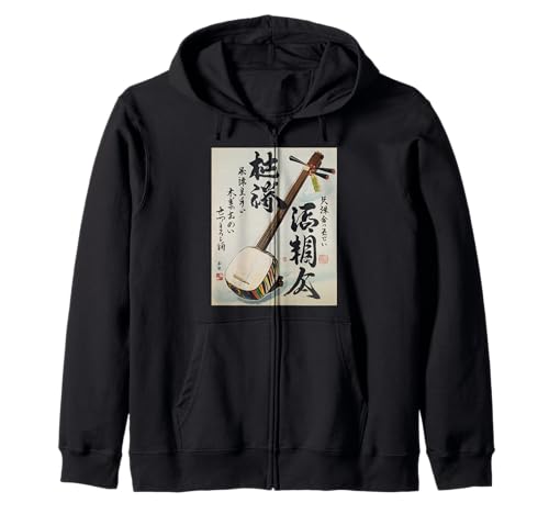 三味線をモチーフにした和楽器デザインのジップパーカー。日本の伝統音楽と美術を融合させた一品で、軽やかな着心地とスタイリッシュな見た目が魅力です。日常使いから特別なシーンまで幅広く対応。
