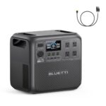 BLUETTI ELITE 200 V2は、350Wソーラーパネル付き、2073.6Whのポータブル発電所で、4つの2600W AC出力を備え、LiFePO4バッテリーの寿命は17年です。