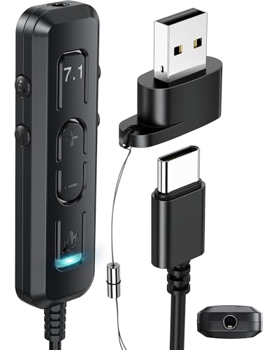 USB 外付けサウンドカード PC 2 in 1ゲーム用 & 7.1ステレオサラウンドサウンド USBオーディオアダプター マイクボリュームコントロール付き タイプC~3.5mmヘッドフォンアダプター ノートパソコン Mac Android 携帯電話用 プラグアンドプレイの製品情報