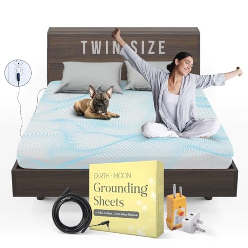 Earth and Moon グラウンディングシーツ ツインサイズ 99x75x15インチは、94%オーガニックコットン製で、導電性シルバーファイバーを使用。睡眠とストレス軽減に最適。コンセントテスター付きの完全接地ベッドキット。