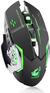 ゲーミング マウス 光学式 2400DPI 高性能 7色 RGB LEDライト 高精度ターゲティング 3段調節可能DPI 6ボタン USB 無線 充電 ミュート 人間工学に基づいたデザイン 手首の痛みを予防 光学式 pc ラップトップなど対応 (黒)