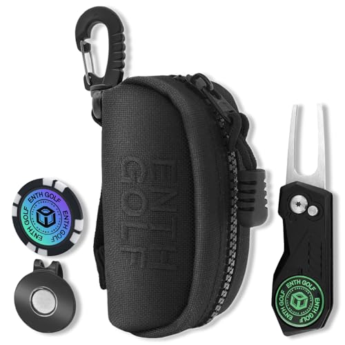ENTH 1000D高耐久ナイロン製のゴルフボールケース(2個用)です。開閉式グリーンフォーク、ゴルフマーカー、ハットクリップの4点セットが付属し、便利さと耐久性を兼ね備えています。