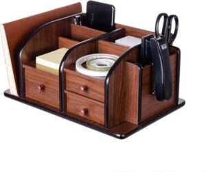 Eculcki 茶色の木製デスクオーガナイザー複数のコンパートメント3つの引き出しスロット2つの棚ラックホルダーオフィス用品キャディーテーブルトップストレージデスクトップ文房具アクセサリーソーターホームキッチン [並行輸入品]