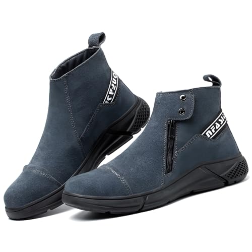 Snughomの溶接用安全靴は、耐熱本革レザー製で通気性抜群。先芯入りでつま先を保護し、滑り止め・刺し穿き防止ソールを装備。耐摩耗性と衝撃吸収機能に優れ、工場や現場作業に最適なカジュアルブーツです。