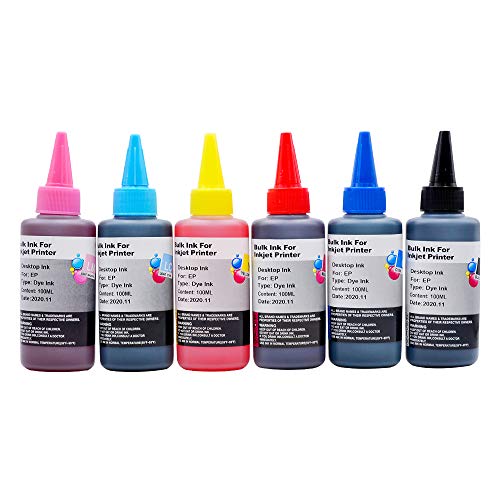 エプソンの全機種対応、100ML容量の詰め替えインク染料6色セット(BK/C/M/Y/LC/LM)。高品質な互換ユニバーサルインクで、色の再現性に優れています。印刷コストを抑えたい方におすすめ。