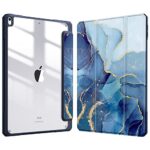 Fintie iPad Air 2019 ケースは、透明バックカバーでApple Pencil収納可。三つ折スタンドとスリープ機能付き、軽量で薄型。傷防止PU合成レザーとTPU使用、マーブルブルー柄。