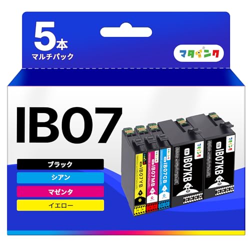 マタインク IB07CL4B 互換インクカートリッジは、エプソン用の4色セット(IB07KB*2, IB07CB, IB07MB, IB07YB)で、PX-M6010F/M6011F/S6010に対応した大容量タイプです。