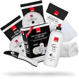 Detailmate 研磨セット:ルーペ トライアルキット:Uno ピュア ポリッシュ 1L + 2x ポリッシュ スポンジ 極細 + 両面研磨クロス ホワイト + 爪パッドツール + スーパーフリース ポリッシュ クロス