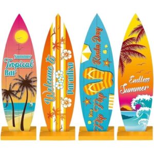 Toivexa サーフボード 木製 サインボード 夏テーマ ヴィンテージ ビーチサイン 飾り板 雑貨 内装 プールパーティー デコレーション 寝室 リビングルーム ダイニングルーム用 夏ハワイパーティー 装飾 4個