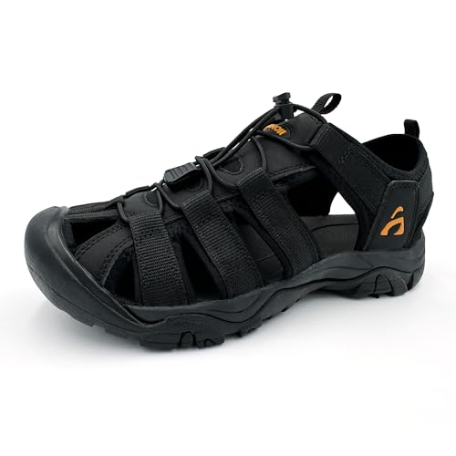 アモジのメンズスポーツサンダル(ES709)は、つま先保護付きで調節可能なストラップを採用。アウトドアやハイキングに最適な水陸両用タイプ。オシャレなデザインで夏のドライブにも活躍!サイズ29.0cm、色は黒。
