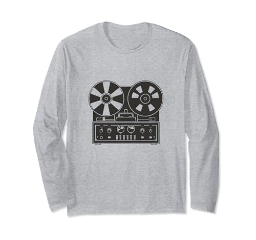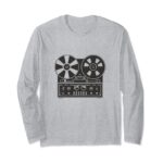 ヴィンテージリールのデザインが映える長袖Tシャツ。プレイヤーやスタジオ機器ファン必見の一枚で、快適な着心地と個性的なスタイルを提供します。