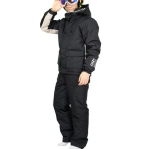 [ハッピー] スキーウェア キッズ ジュニア 上下セット 男の子 子供 スノーウェア 耐水圧5000mm サイズ調整 2602 ブラック 160cm