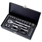 イーバリューのソケットレンチセットは35組入りで、差込角は6.35mmと9.5mm。作業効率を高めるため設計されており、耐久性抜群。様々なサイズを揃えているので、多用途に対応可能です。