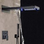 AJYBYUKJのラグジュアリーなLEDカラーシングルハンドルシャワータップは、オイルラブドブロンズ仕上げで、3ウェイ機能を備え、レインフォール式のシャワーを楽しめます。